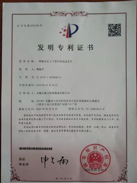 Patent for Invention Certificate
